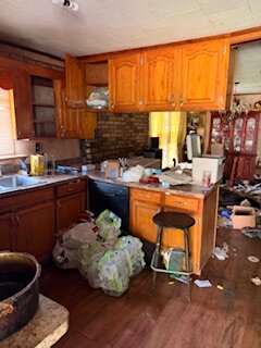 This is a three bedroom one and a half bathroom brick house has subfloor issues between the kitchen and the living room needs a roof and cosmetic updates