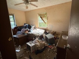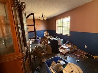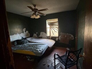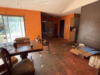 House is a 4 bed 3 bath brick and siding house. Needs total rehab. Has a large addition and pool area that needs filled.